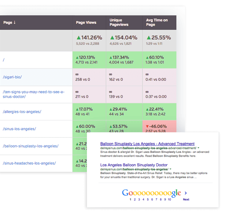 Data Analysis & Organic Traffic Increase from SEO Services for Balloon Sinuplasty Doctors